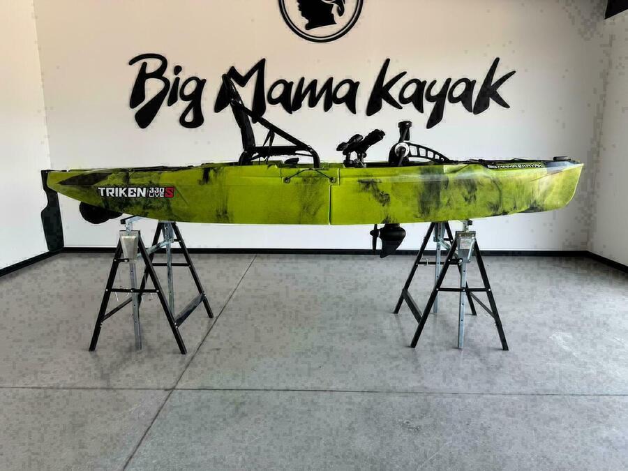 Il Triken 330 S Live è il primo kayak divisibile a pedali con elica di Big Mama. Una soluzione rivoluzionaria che unisce le performance del celebre Triken 330, uno dei kayak da pesca più venduti di sempre, con la praticità di una struttura smontabile, facilmente trasportabile e versatile.